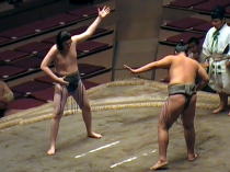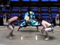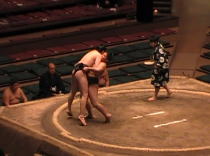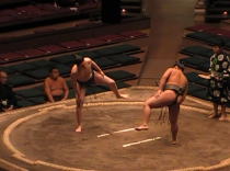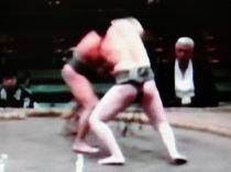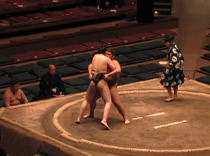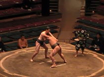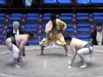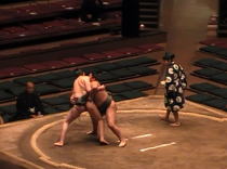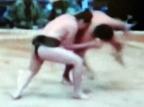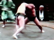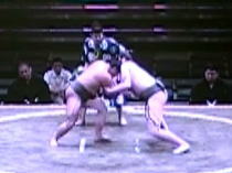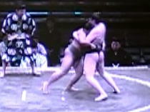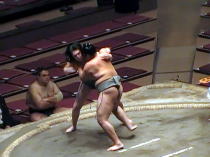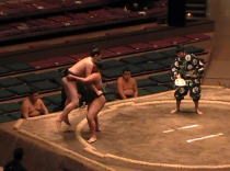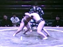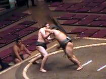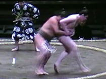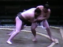 この日の相手は隆斎藤。立ち会いの呼吸が合わず、2度目の立ち会いで両者がっぷり四つになる。、