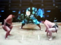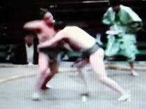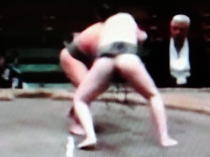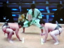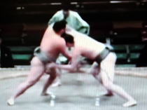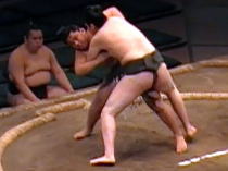 11日目の相撲と似たような展開だった。立ち合いまともに立ち向かっていくが、やはり相手の体重を