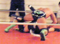 | ≪維新力参戦試合≫ 当初の予定では、セミファイナルで覆面太郎とタッグを組み、田村和宏、柴田正人と対戦することになっていたが、 越後隆が維新力と対戦したいという強い要望があり、そのためカード変更となる。 それに伴い、越後と対戦予定だったジ・ウインガーはセミファイナルの維新力のところに入る形となった。 試合は静かな展開で始まる。維新力はグラウンド技で越後を攻める。越後も返し技で維新力を攻めるも、 ロープに逃げられる。再び、同じような展開で維新力が攻め、越後が返すと維新力はまたもやロープブレーク。 維新力が巧みにロープブレイクに逃れるため、越後は攻めきれない。このようなシチュエーションが何度か続く。 この日の維新力は、アームロック、レッグロツク、逆エビ、首四の字など、プロレスの基本技にこだわっている ように見えた。打開策を見つけたい越後は、何と相撲の仕切りの体勢からの相撲ラリアット。維新力の得意技で攻 撃する。しかし、これは火に油を注ぐ形になる。自分のプロレス・スタイルを使われた維新力は、逆上し相撲ラリアットで 反撃。最後はオリジナル技の小股すくいスープレックスで難なく仕留めた。 |